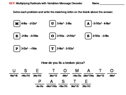 Free math worksheets multiplying radicals